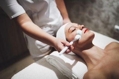 Techniques used by estheticians include facial steaming, wrapping, exfoliation, waxing, pore cleansing, extraction, and chemical peels. Creams, lotions, wraps, clay or gel masks, and salt scrubs are used. Machines may also be used to help deliver high-tech services.
